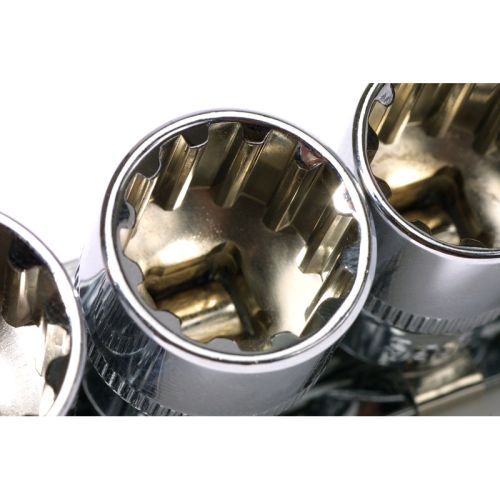 Fits metric and SAE 6-point, 12-point, TX-Star, Square, Spline and Ribe nuts