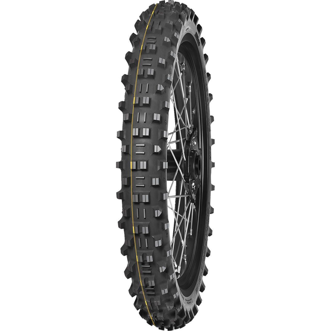 Super (Fast Enduro) identified by the characteristic yellow stripe : medium carcass construction and compound, especially designed to provide excellent stability in fast corners. Ideal in softer terrain.
